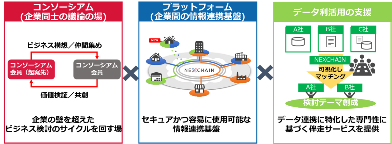 今後もNEXCHAINは「コンソーシアム」としての共創の場と、「NEXCHAINプラットフォームサービス」の提供価値向上に努め、あらゆる企業が、安全性の高い環境で情報を連携できる基盤を整備することで、お客さまおよび企業の双方に有益なエコシステムを実現し、オープンイノベーションの加速に貢献してまいります。
