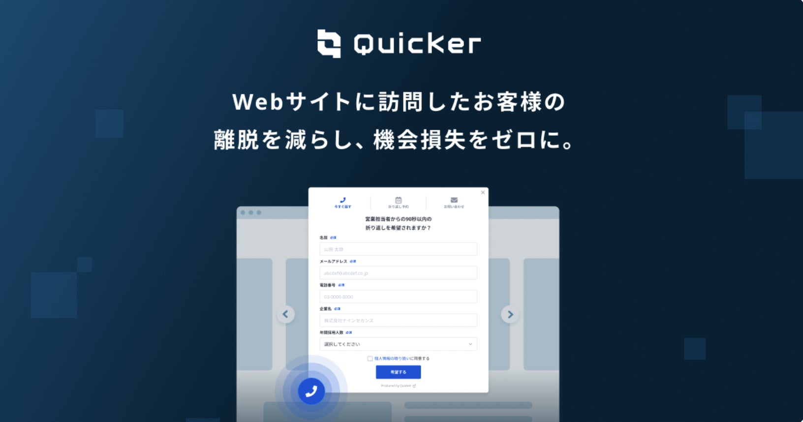 Quickerはたった「ワンステップ」で、Webサイトに訪問したお客様と営業担当者を繋げて、これまでに無いシームレスな「お問い合わせ」の体験を提供します。