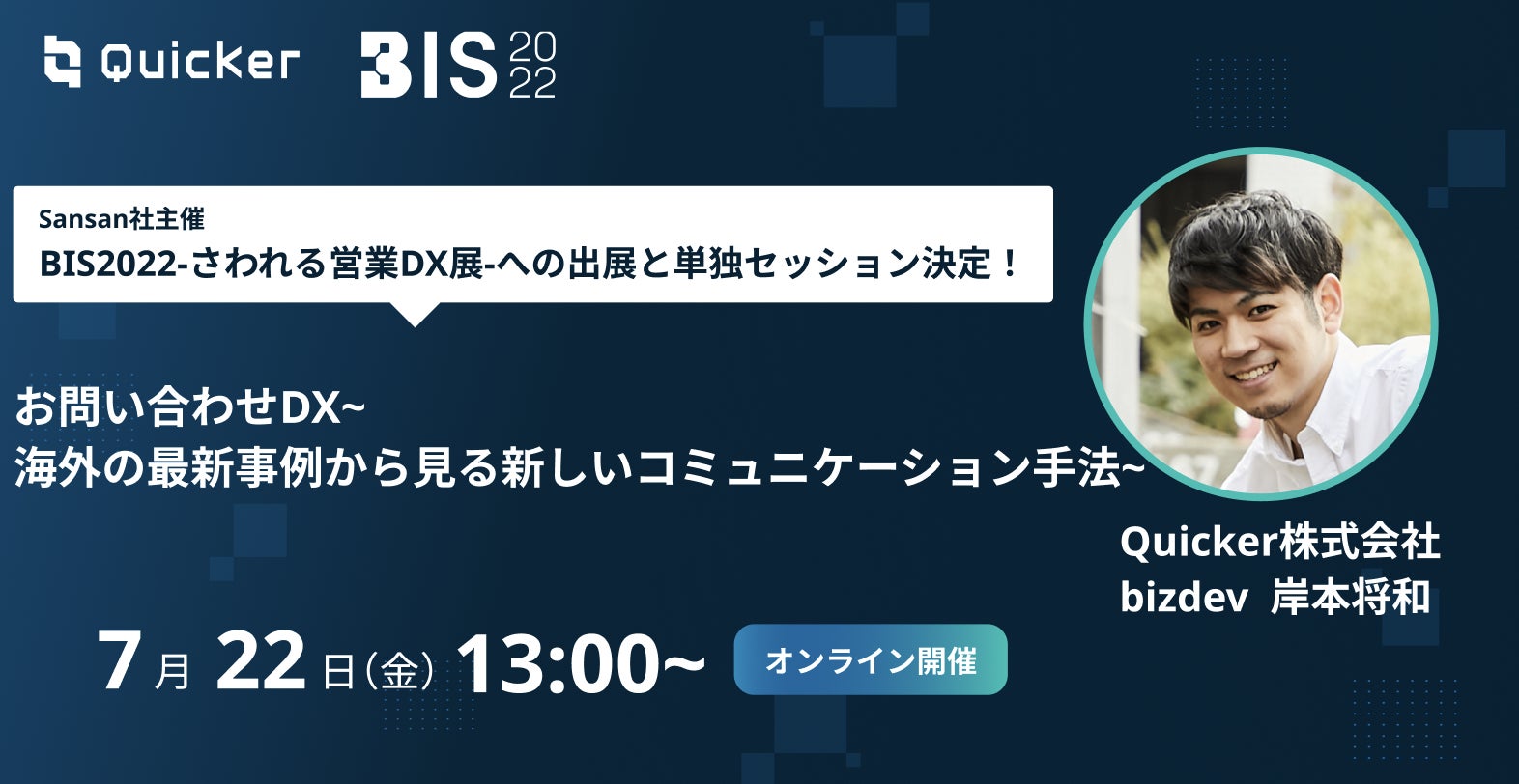 Quicker株式会社「Sansan社主催 BIS2022-さわれる営業DX展-」への出展と7月22日(金)13:00~ 単独セッションが決定!