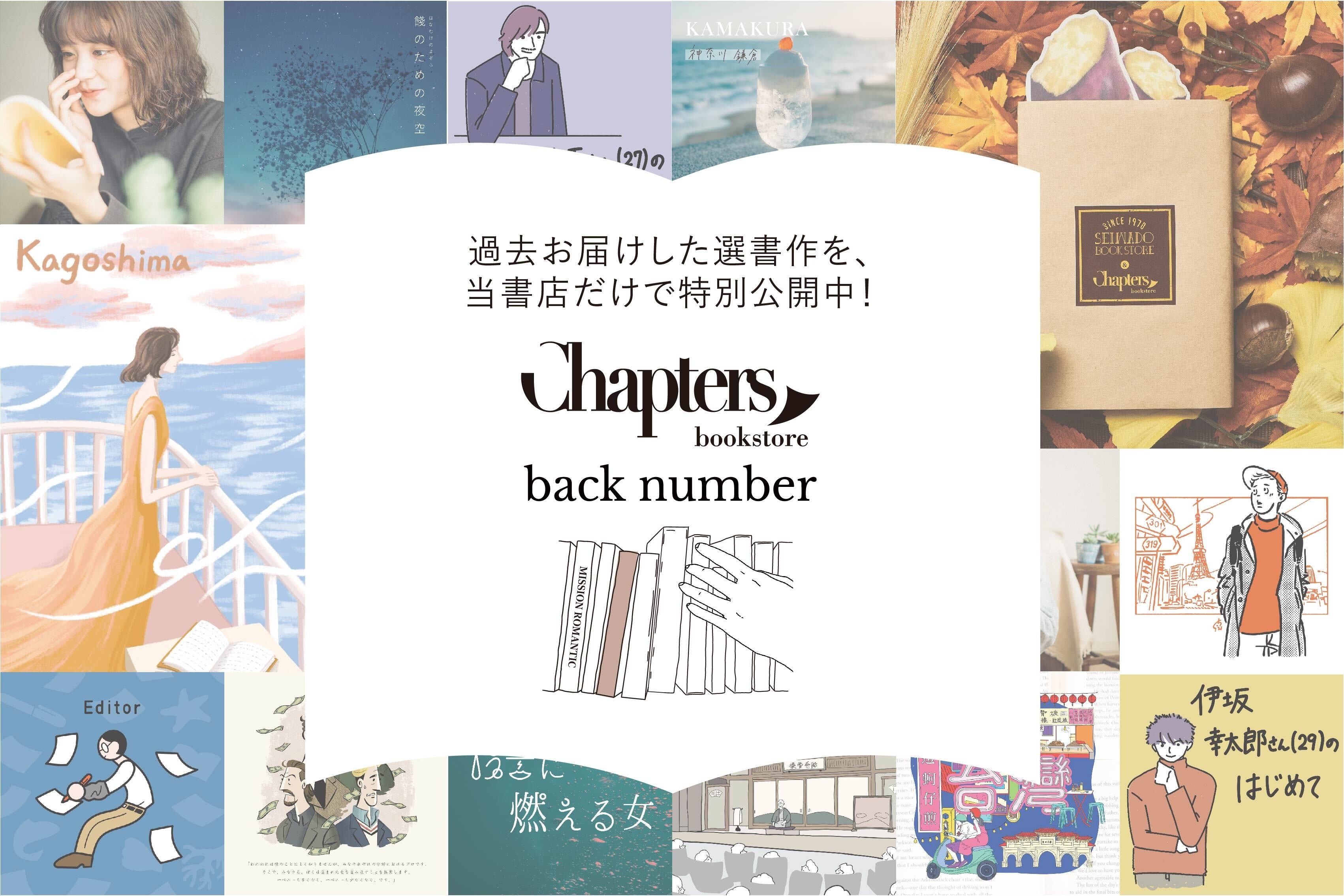 さらに、中目黒 蔦屋書店では今月POP UP展開を実施、チャプターズの世界観を存分にお楽しみ頂けるよう、5月最新の選書4作品と合わせ、バックナンバーも特別公開です。