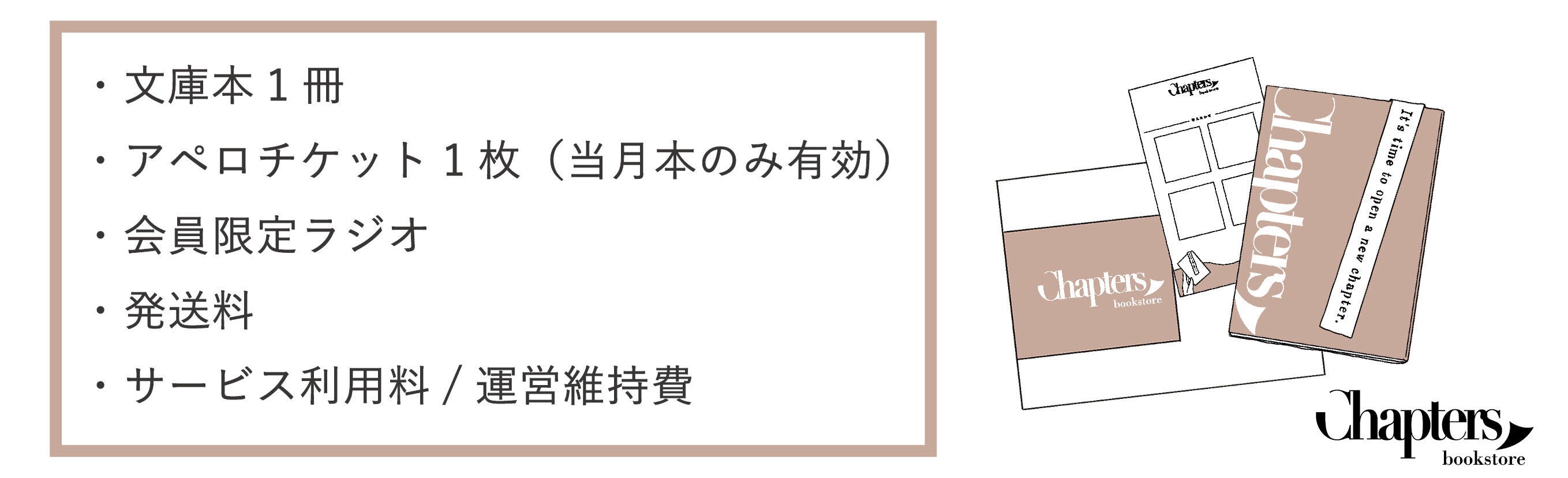 チャプターズは、毎月季節性やトレンドを踏まえて設定される独自の選書テーマの元、現役書店員が厳選した文庫本4冊のみを月替りで取り扱うサブスクリプション型のオンライン書店です。