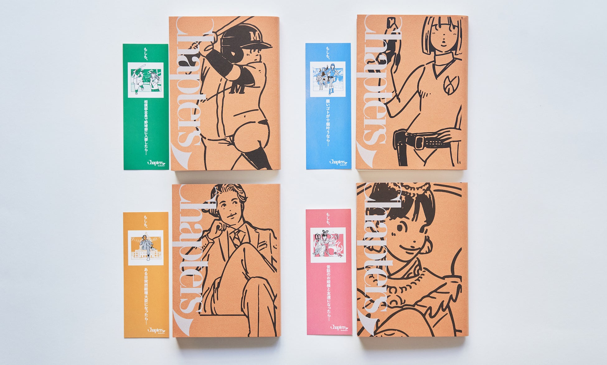 選ぶ作品によって異なる、それぞれの作品の登場人物をイメージして描かれた4種類のブックカバーは、今月のチャプターズでしか手に入らない限定デザイン。コレクター心をくすぐる一月となっております。