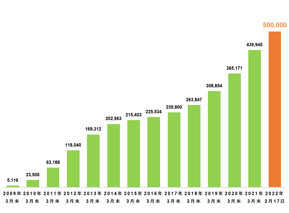 当社は、2008年の開業以来、「ライフネットの生命保険マニフェスト」を軸として着実な成長を実現しており、保有契約件数は、2020年9月に40万件を突破してから、開業以来最速の約1年5ヶ月で10万件増を達成しました。ライフネットの生命保険マニフェストに共感し、支えてくださった、多くのご契約者ならびにステークホルダーの皆さまのご支援に厚く御礼申し上げます。