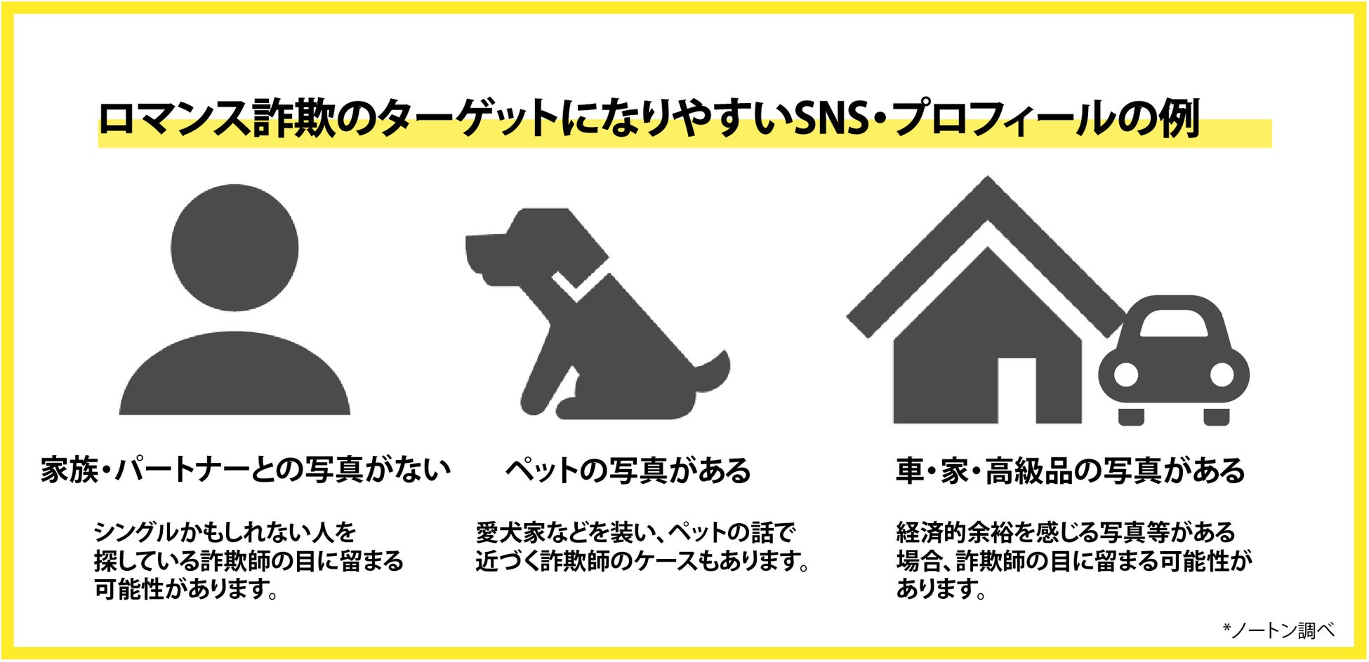 ※ノートンでは、このような特徴でプロフィールを作成した場合、ターゲットになりやすくなるかどうかを検証した実験データがございます。ご希望の場合には、メディア関係者向け情報よりご覧いただける連絡先までお問い合わせください。