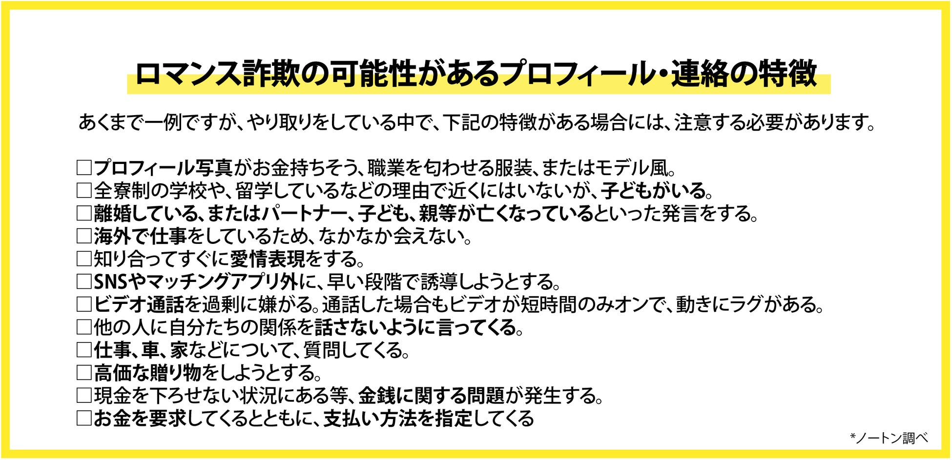 ・ロマンス詐欺の可能性があるプロフィール・連絡の特徴