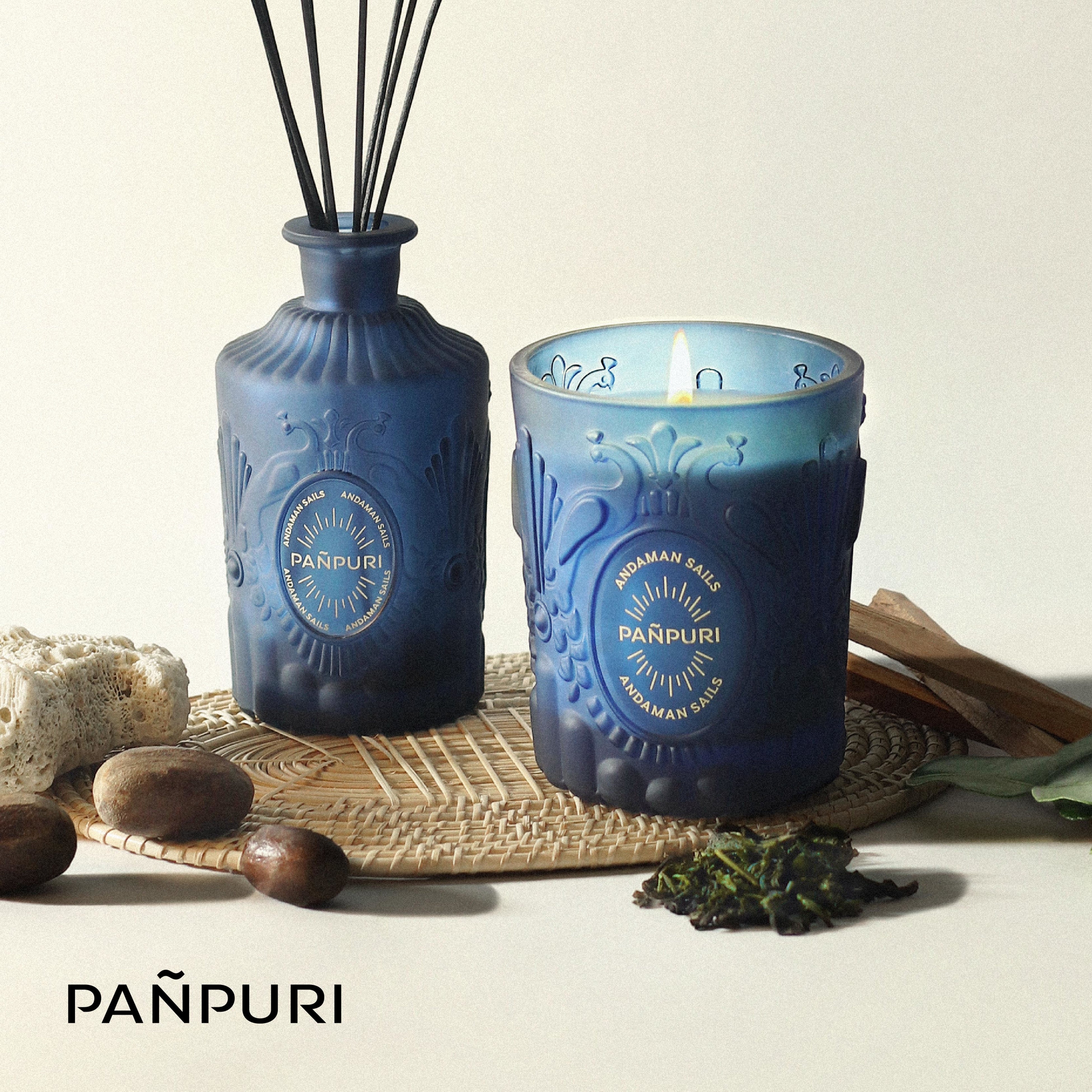 旅をテーマとしたパンピューリのホームフレグランスシリーズ 「Voyage of Curiosities」の一つ、Andaman Sails (アンダマンセイルズ)は、タイが面する、「アンダマン海」でのひとときを彷彿とさせるコレクション。 エメラルドに輝く、海の白い砂浜に打ち寄せる波のシンフォニーが心を解き放ち、水平線にそびえる石灰岩の絶壁が、まるで海の底から湧き上がる自然の彫刻のように旅人を魅了する、アンダマン海。 トップノートにベルガモットを配したクールな香りは、アンダマン海が何世紀も前から旅人や貿易商人たちを冒険へと誘ったように、無限の可能性へと魂を揺さぶります。グリーンティーが香りに深みを与え、ミドルノートのナツメグ、ベースノートのサンダルウッドは興奮と驚きの感情を呼び起こします。