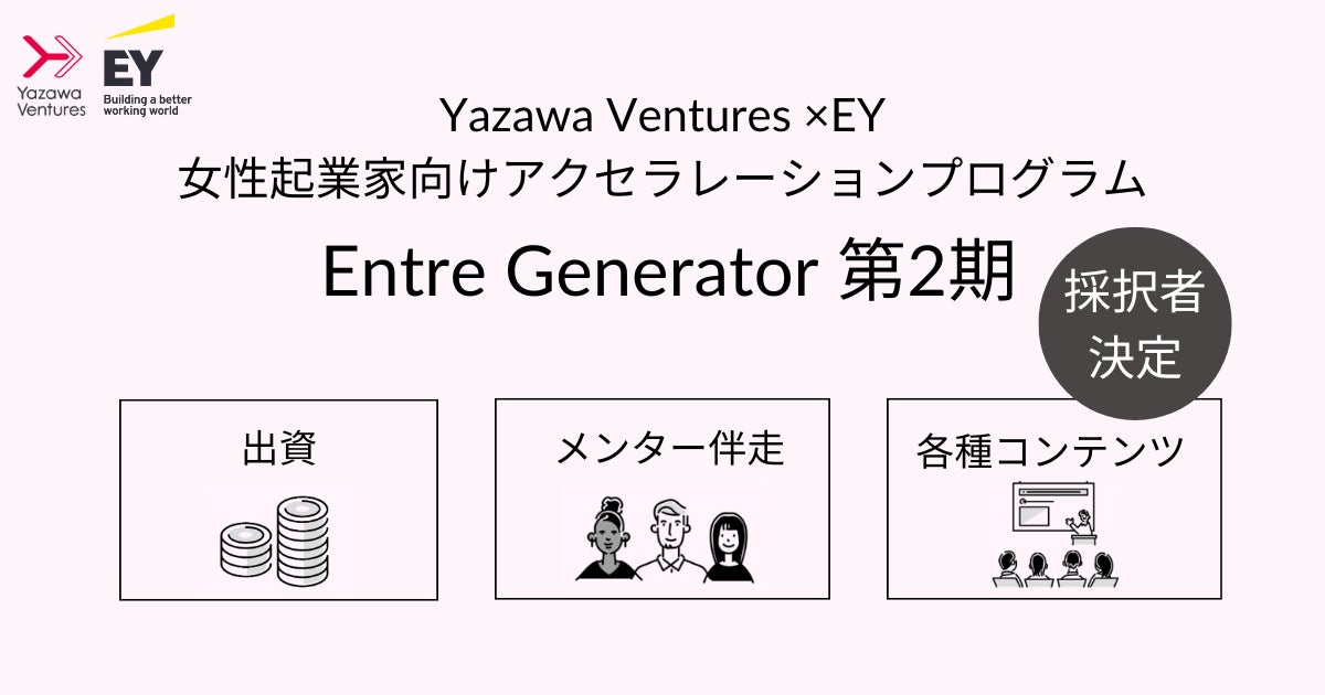 Yazawa Ventures × EY Japan、女性起業家向けアクセラレーションプログラム「Entre Generator 第2期」で採択者を決定