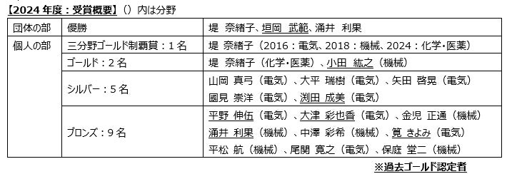 ・ゴールド認定者:在籍数10名(機械分野 5名、電気分野 6名、化学・医薬分野 4名)