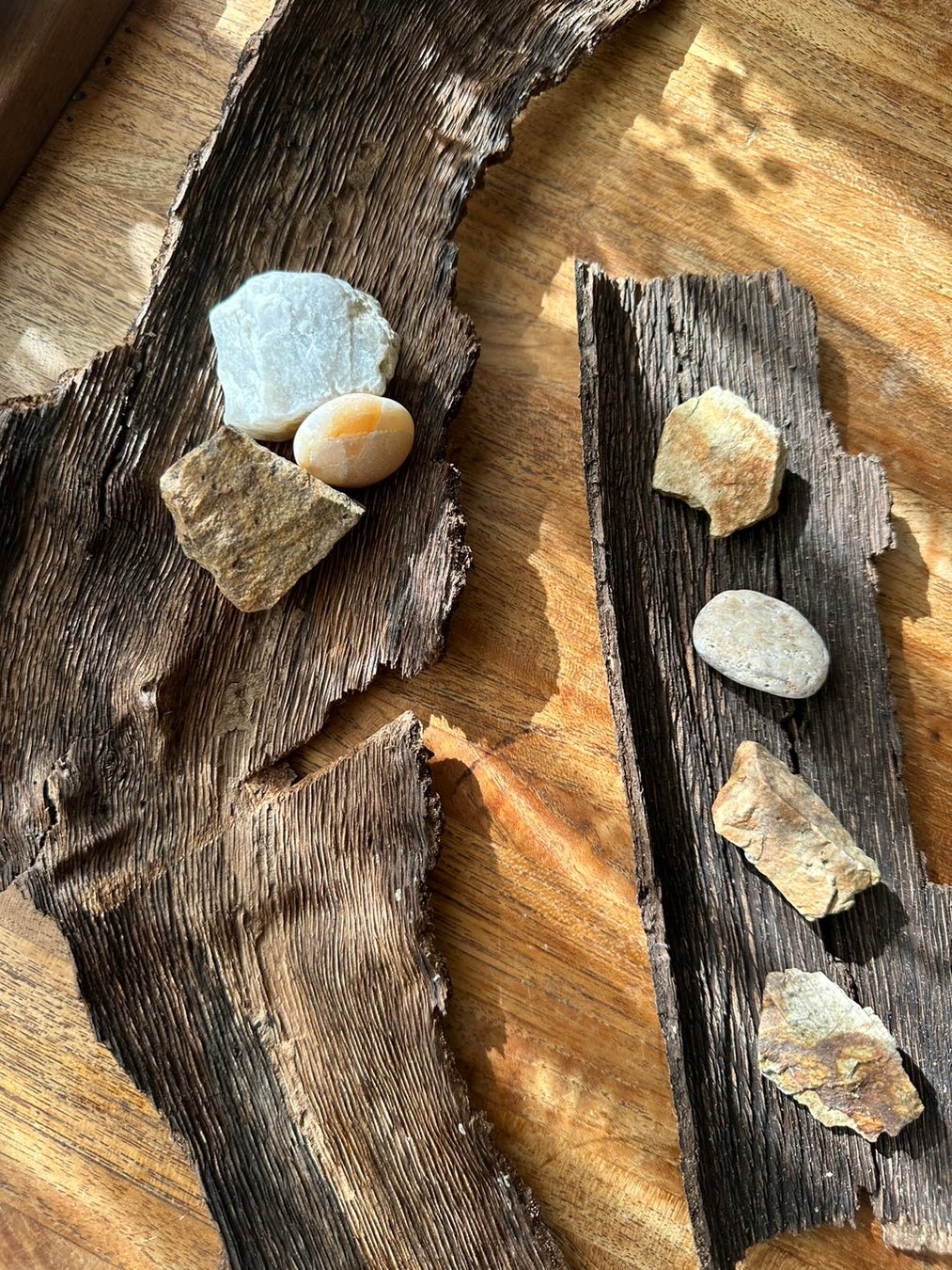 Öffen 玉川高島屋S・C店では、神戸北野オフィスで使用していた長テーブルなどを始め、ひとつひとつにこだわりを持ち、愛用していたビンテージラグや家具を使用。一部の壁には、オッフェンプロデューサーのお子さんが海に行くたびに拾っていたシーグラスや石が埋め込められていたり、使わなくなったクッションマットを譲り受け、新たなソファベンチにアップサイクルするなど…Öffenらしいエシカルなストーリーが詰まったお店となっています。