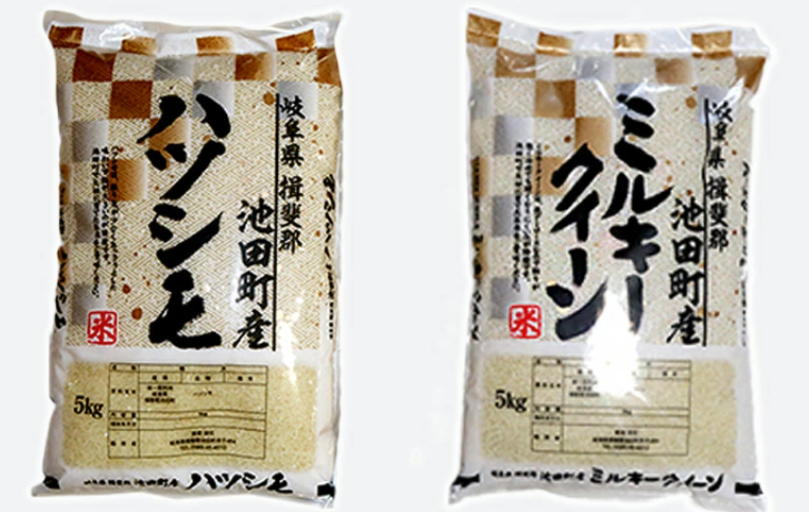 岐阜県揖斐郡では、透き通った水と豊かな土壌に恵まれた地形を生かして、風味豊かな美味しいお米を育てることができます。池田町では、こしひかり、ミルキークイーン、はつしも、といった品種を栽培しており、食卓に並ぶおかずと一緒にお召し上がりください。