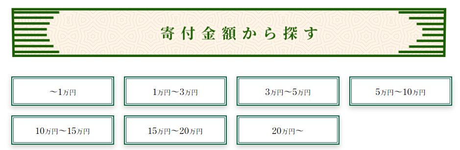 また、今回のリニューアルではページ下部に寄付金額別で商品を検索できるように「寄付金額から探す」の導線を追加し、ユーザー1人1人に合わせた商品検索ができるよう配慮しました。