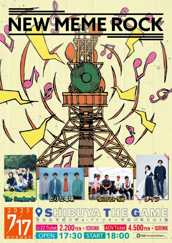 ■公演概要 公演日:2023年7月17日(月・祝) 会場:渋谷 THE GAME 開催時間:開場17:30/開演18:00 料金:4,500円 + 1ドリンク 出演者:The Songbards・とけた電球・Maverick Mom・レイラ 主催:D2innovation株式会社 お問い合わせ先:info@funkeon.jp 公式Twitter:https://twitter.com/NEWMEMEROCK 公式Instagram:https://www.instagram.com/newmemerock/ |