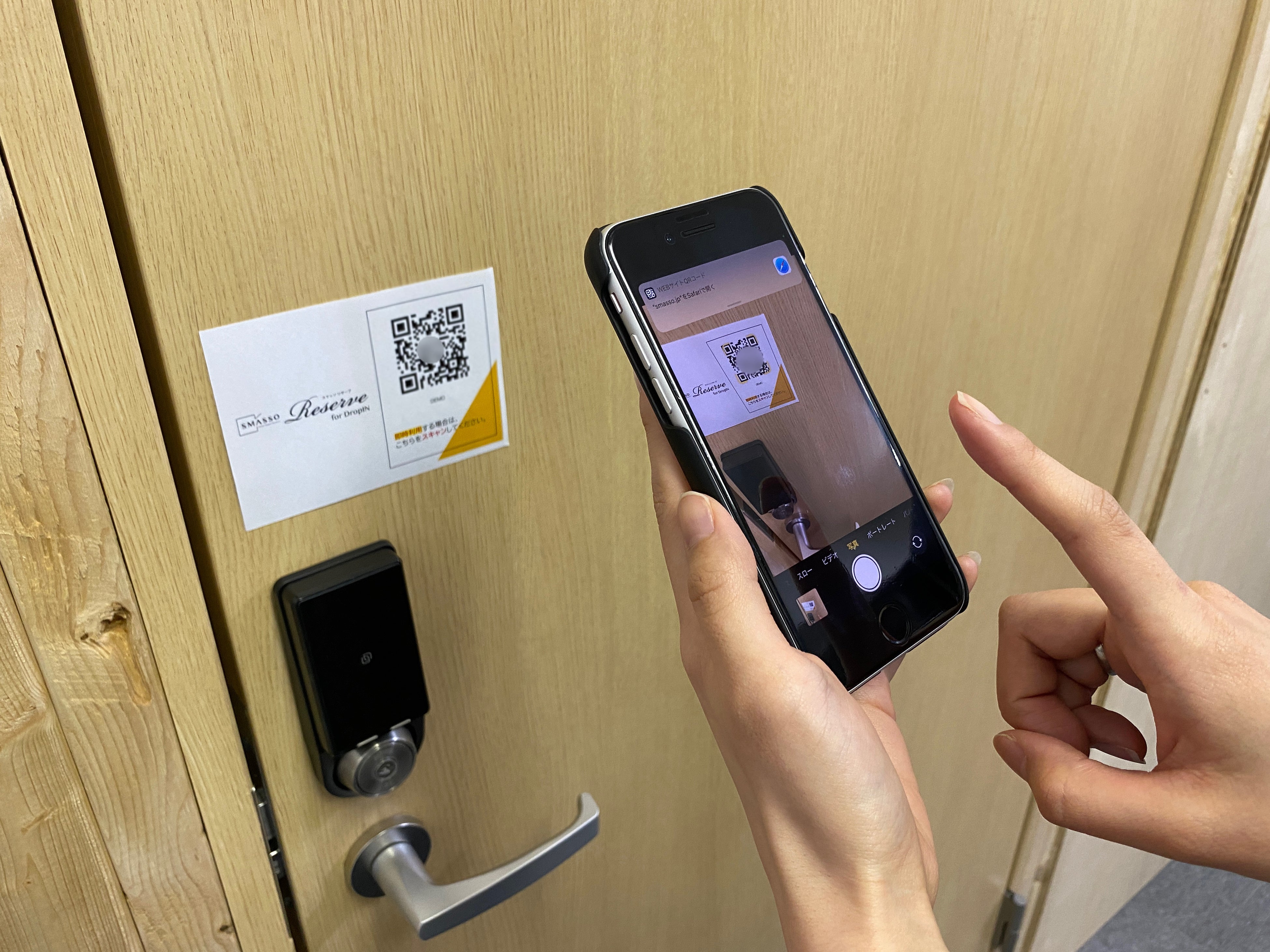 - シェアスペースの扉に専用QRコードを貼るだけ