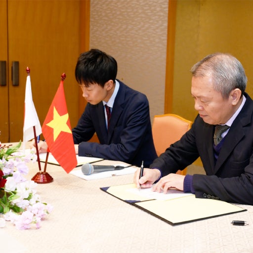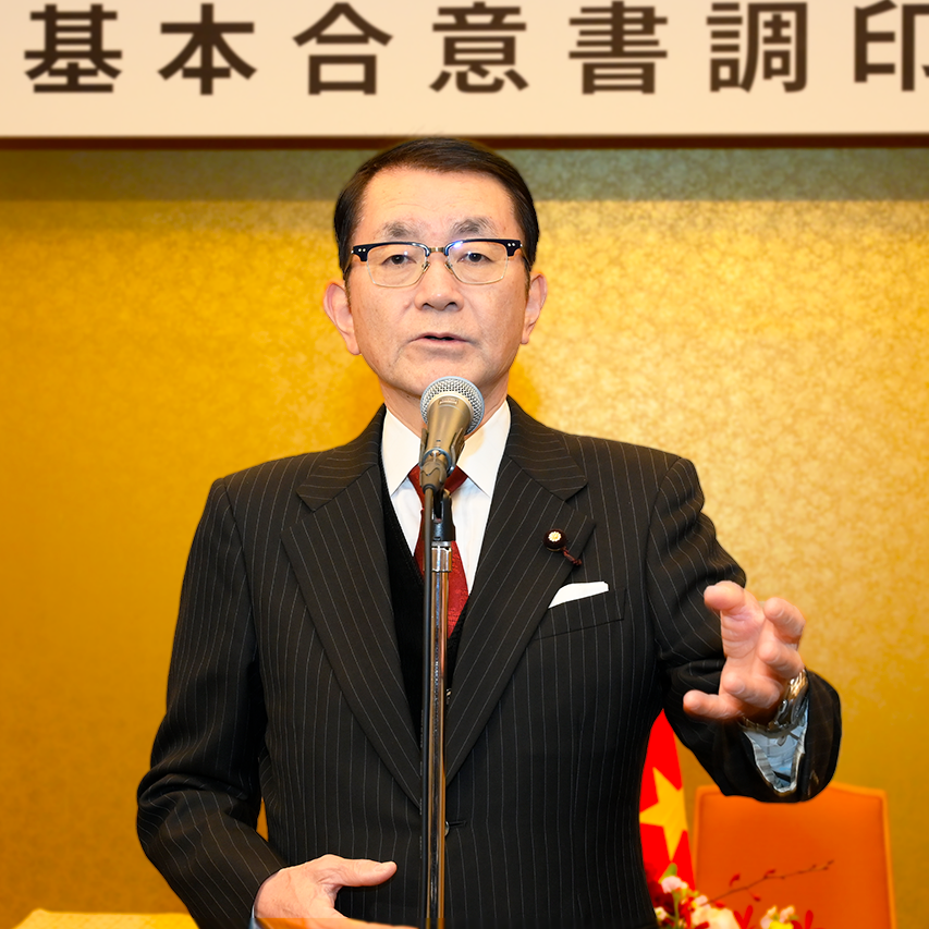 AS社の再生医療事業には、以前から非常に期待をしていた。日本では山中伸弥教授が再生医療のiPS細胞でノーベル賞をとられました。再生医療分野は非常に可能性があり、いろいろな病気を治していける可能性があるということで非常に期待をしている。ベトナム国家大学医科薬科大学におかれては、このAS社の技術に注目され、今後一緒に研究をしていきたいとの要望があったと聞いています。調印式を機に両者の親交が深まり、この再生医療が発展をすることで、ベトナム国民の皆さんにも日本の素晴らしい再生医療を提供できるようになり、国民の皆様に喜んでいただけるような成果を私も期待をしたいと思うところです。