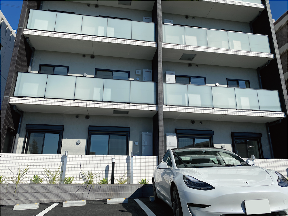 新築アパートにもEV充電器を全区画に設置する事例が多くなってきています。EV利用者が賃貸物件を探す際、「EV充電器付き」という条件で絞って検索することが考えられるため、EV充電器がついていることが他の物件との差別ポイントとなるでしょう。