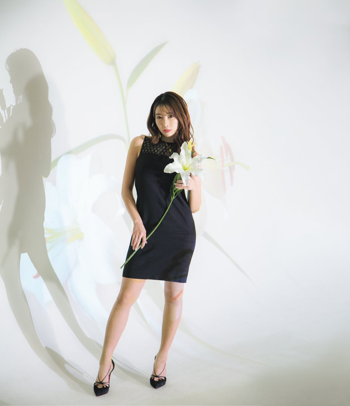 シャネル、ヴィトン、ディオール……自身が愛する私物とともに、ブランドへの愛を語ってくれました。「ハイブランドは私にとってお化粧。そして日常」とコメントした森咲智美。誌面カットでは、私物のルブタンのハイヒールを履いてスラリとのびる美脚を披露。