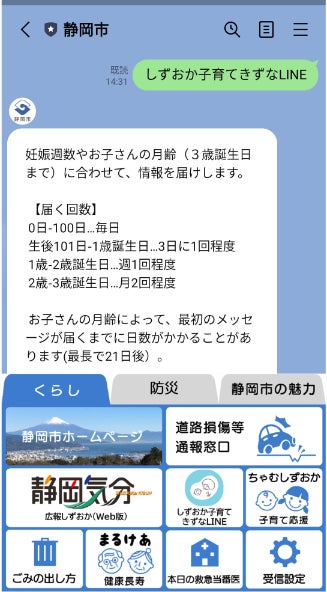 静岡市第4次総合計画の重点政策の取組の一つとして、「しずおか子育てきずなLINE」の配信がスタート。
