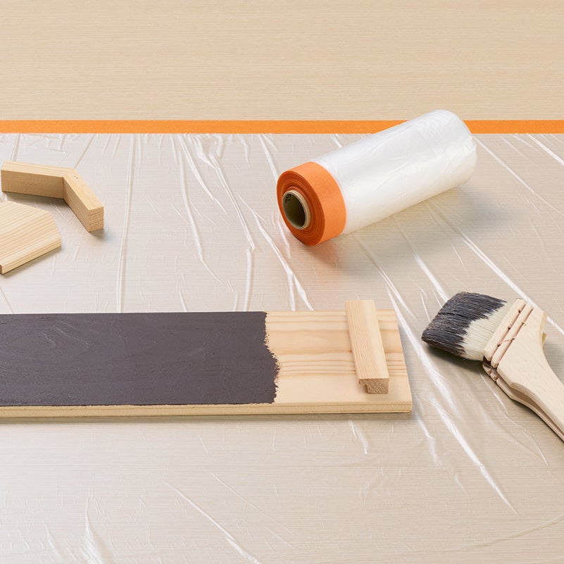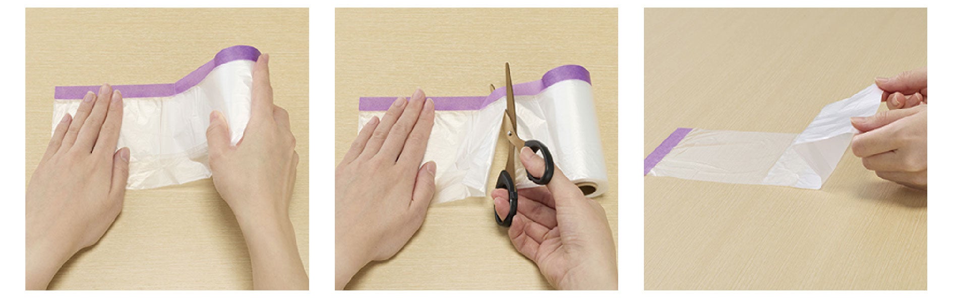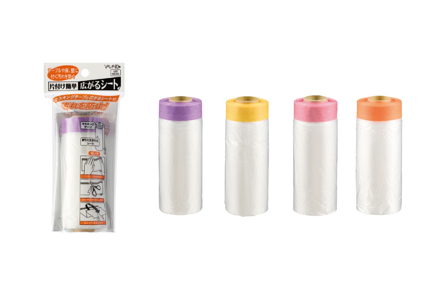 「片付け簡単広がるシート」は、マスキングテープと折りたたまれた養生シートが一体になった汚れ防止専用シートです。事前に汚れから保護したいテーブルや床、壁などにマスキングテープでシートを固定し、シートを広げることで汚れから守ります。主な用途として、お子様のお絵描きや工作、DIY作業での汚れ防止、お子様の食べこぼしや散髪時などの家庭での利用の他、外出時は車内などでのおむつ替えやペットの抜け毛などによる汚れ防止、キャンプなどのレジャーシーン等様々な場面で活躍します。これまでは新聞紙を敷き詰めたり、レジャーシートを準備したりしていた手間が、これ1コで完結します。その上、日常使いに最適な粘着力とサイズ感に加え、シートは表面処理を施すことでひらひらせず床などに吸着するので作業がしやすく、使用後は丸めて捨てられる手軽さも便利な点です。本来この製品は「マスカー」と呼ばれ、主に建築塗装の現場で壁や床を保護するために使われる道具ですが、一般的にサイズが大きく、中には粘着力の強いものもあり、家庭で使うにはハードルが高いものでした。そこで、利便性をそのままに、日常で使いやすく、一般家庭に最適なサイズ感と、家具を傷めにくい粘着力のテープを組み合わせて製品化いたしました。