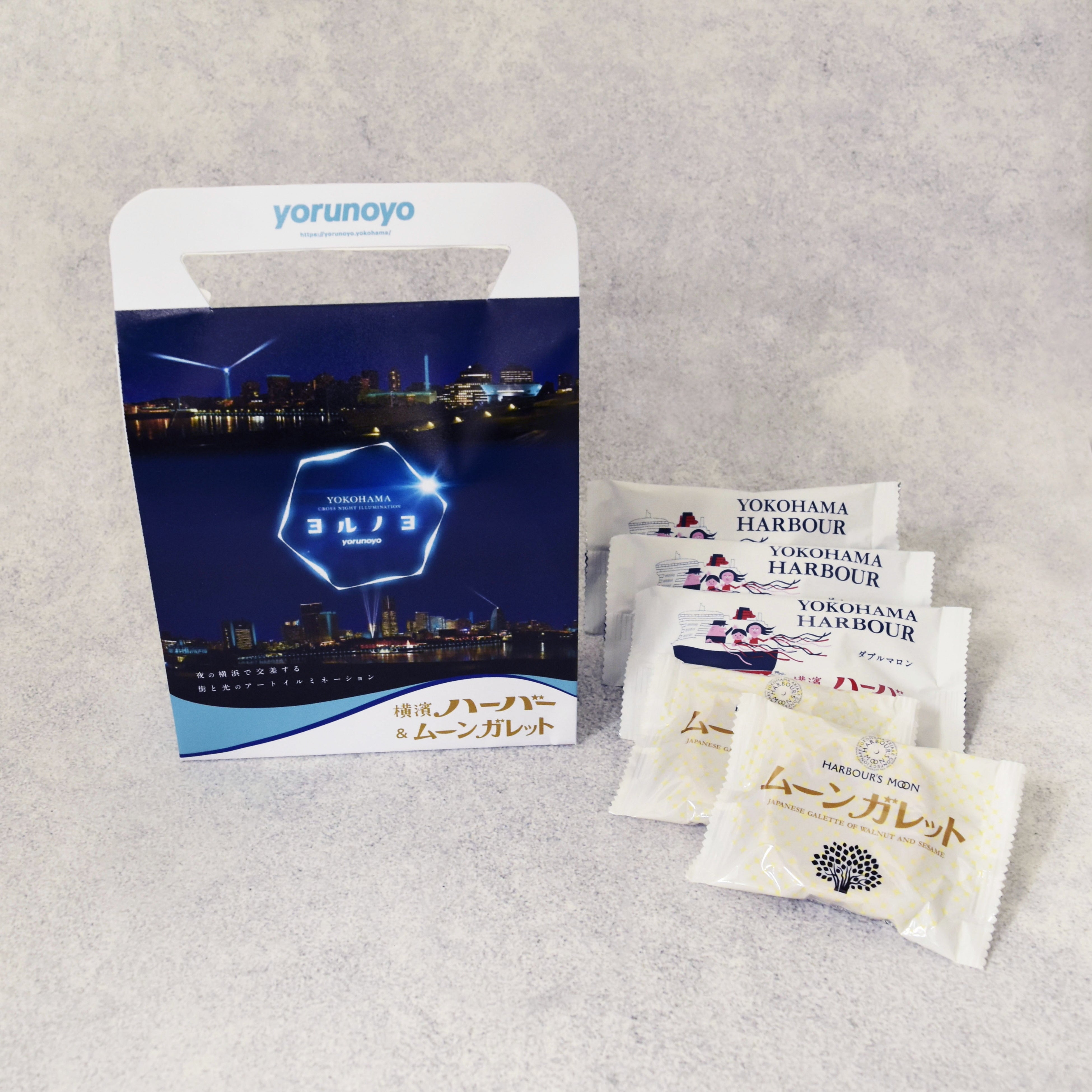 ■横濱ハーバーとムーンガレットを詰め合わせた、ヨルノヨ限定アソートセットを数量限定で販売