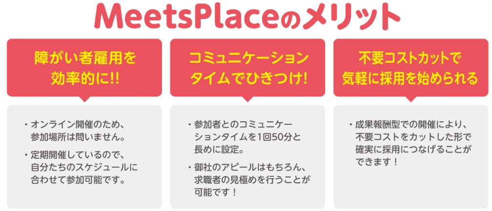 障がい者雇用に特化した成果報酬型オンライン企業説明会「MeetsPlace」