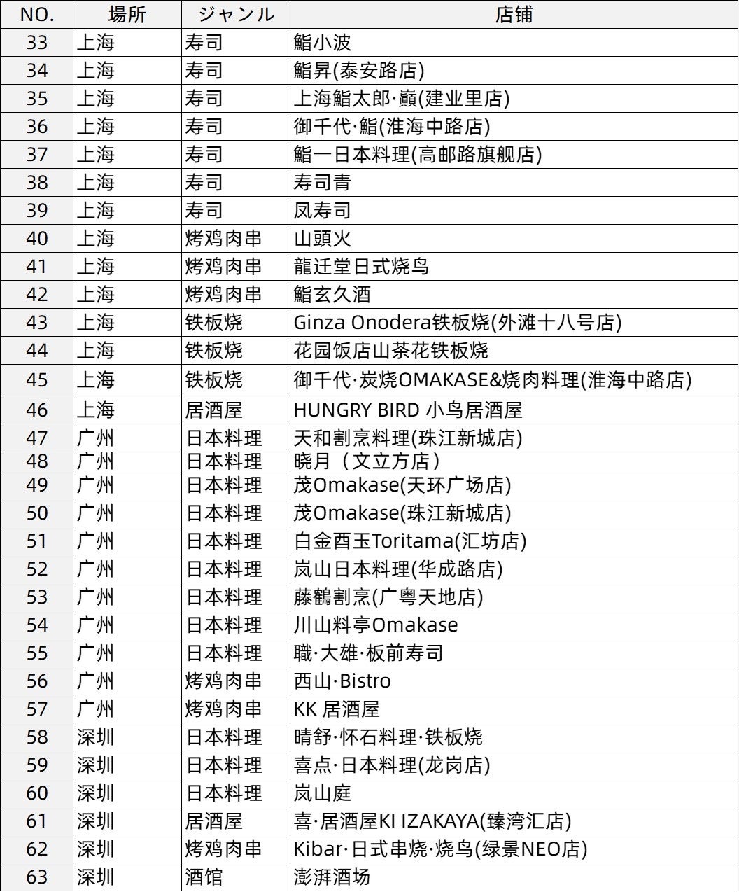 場所:上海、広州、深圳における提携レストラン63店舗にて実施