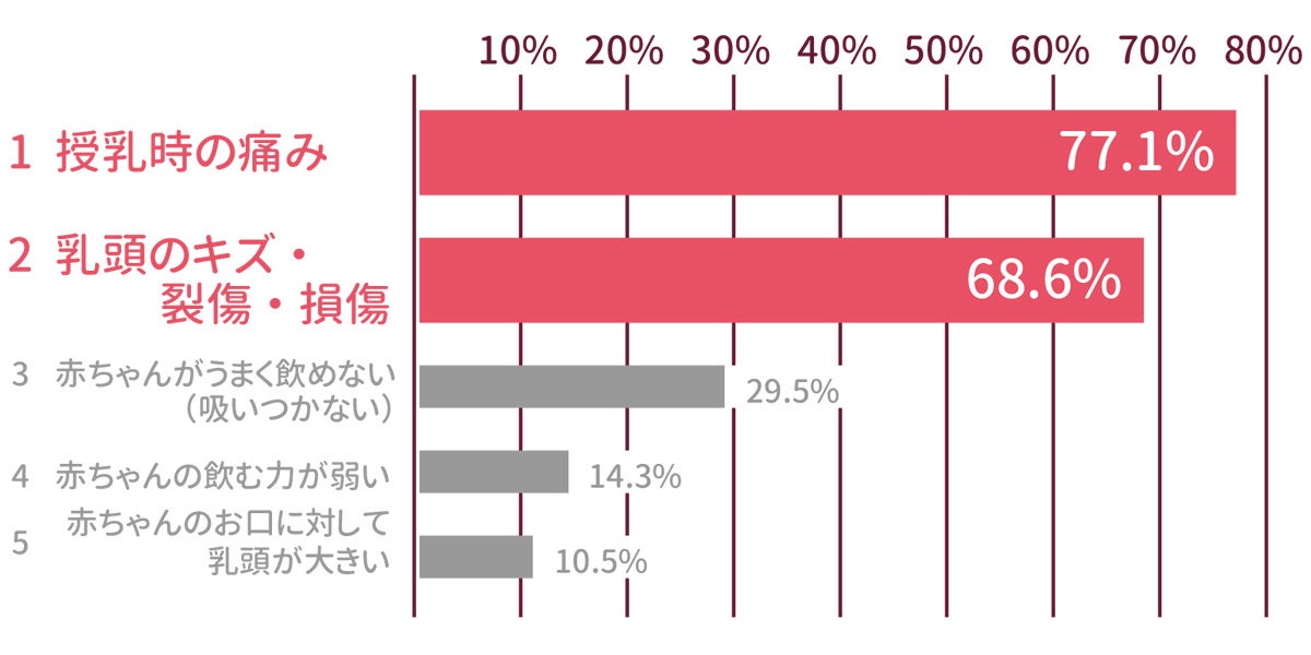 授乳時乳頭トラブルに悩んでいる女性の割合は92%以上