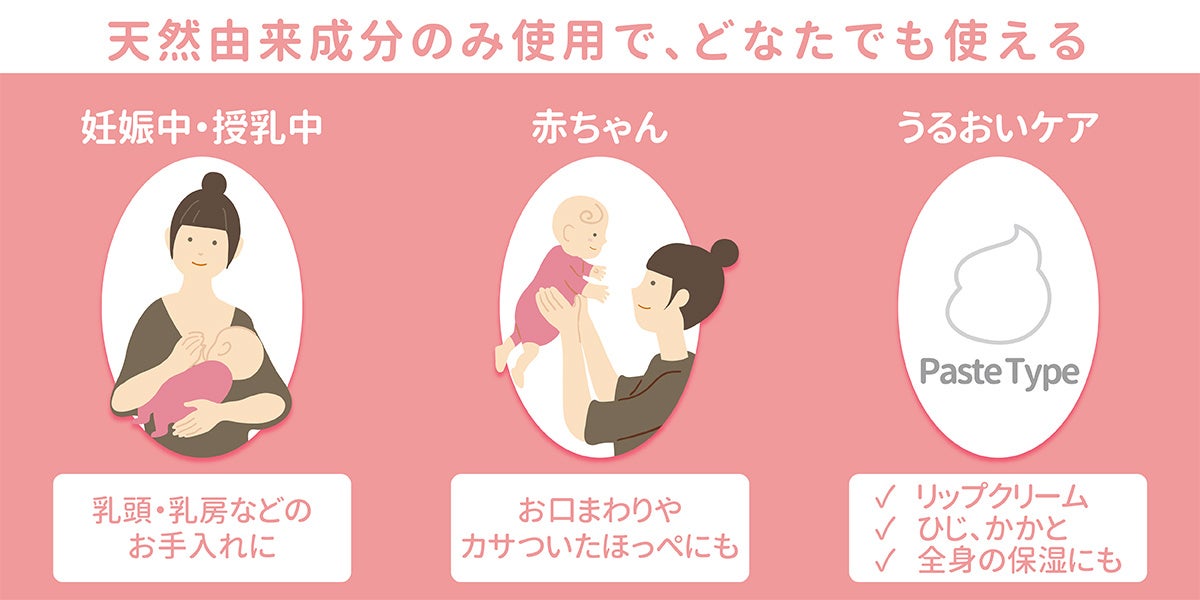 必要なとき乳頭、乳房や乾燥肌などに塗布してください。