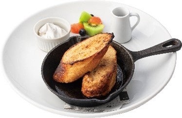 オーツミルクとメープルシロップで漬け込んだバゲットをプラントベースバターでカリカリに焼き上げました。