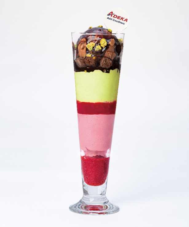 生田絵梨花さんのオススメは「アデカのジミスゴパフェ」※。動物性のミルクやクリーム、チーズの代わりにADEKAの「デリプランツ」を使用した、プラントベースフード・デザートです。