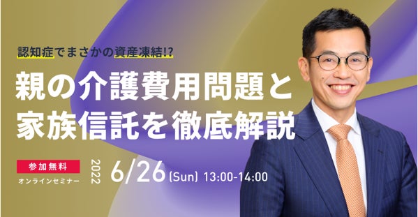 株式会社ファミトラ(代表取締役 三橋克仁)は、昨今、社会問題として注目されている、認知症になってしまった場合の資産凍結問題を解決できる「家族信託」の普及と、組成サポートサービスを提供しております。当社では、家族信託で解決できる課題は何なのか?一般の方にわかりやすく家族信託を知っていただくためのセミナーを開催しており、今回は「親の介護問題」と関連づけて、家族信託のエキスパートが解説するセミナーを開催いたします。