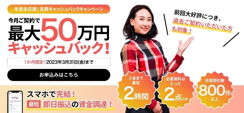 年度末応援!高額キャッシュバックキャンペーンを行っております。