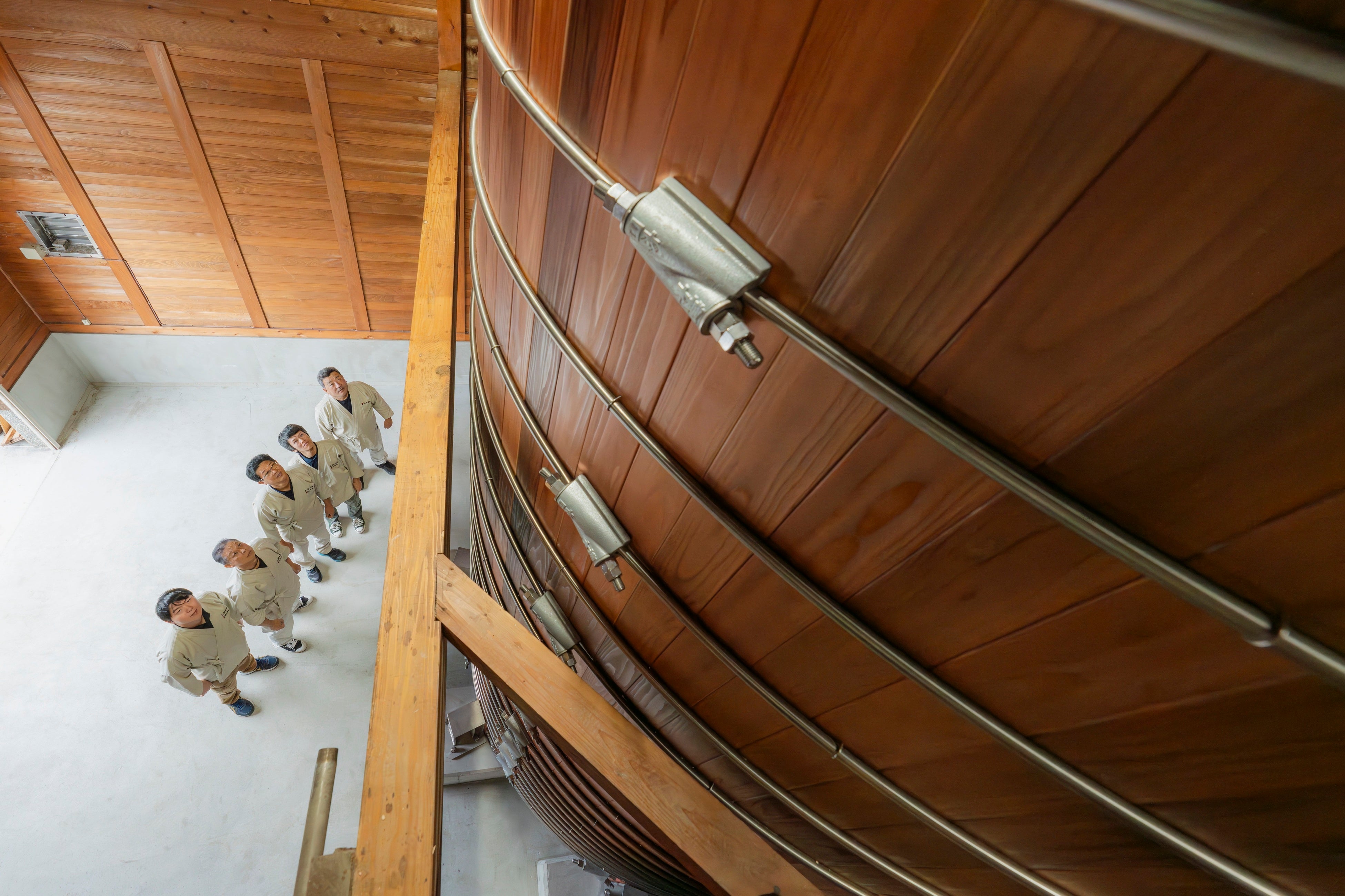 木桶の寿命は、100年~150年と言われており、弊社では、140年以上使用している吉野杉の木桶を修理しながら今も大切に使い続けております。今後も木桶仕込みを継承するため、新たな木桶の導入に至りました。