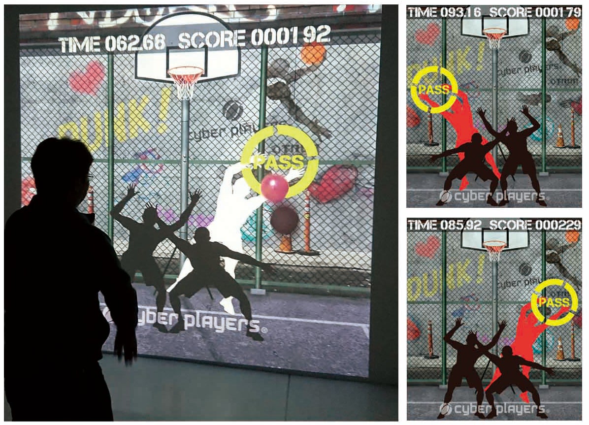 「サイバープレイヤーズ」は、実際のボールとプロジェクションマッピング技術を使った体感型スポーツゲーム。楽しみながら体を動かし、エクササイズにもぴったり。サイバーバスケ、サイバースローの 2種類のゲームを搭載しています。