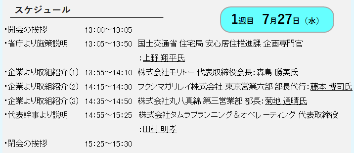 - 1週目 7月27日(金) テーマ「安心の住まいに向けて」~ハードの充実による自立支援~