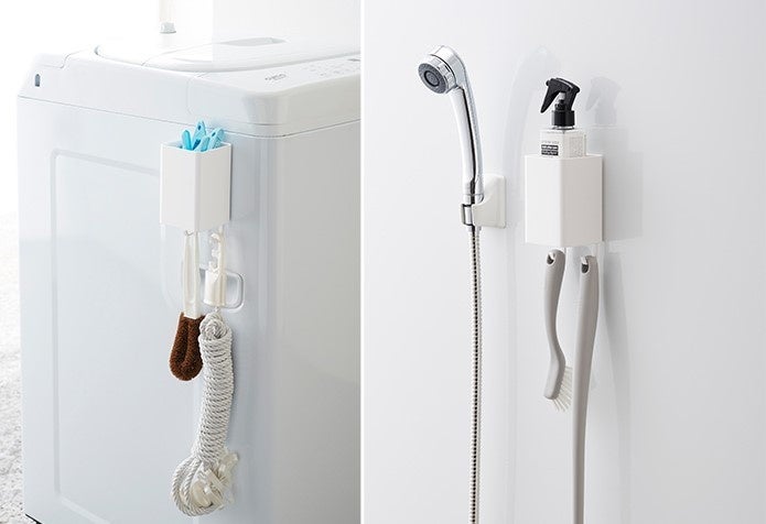 ▲浴室マグネットツール「マグネットストレージ」(山崎実業株式会社)(左)、ガス衣類乾燥機「乾太くん」(リンナイ株式会社)(右)