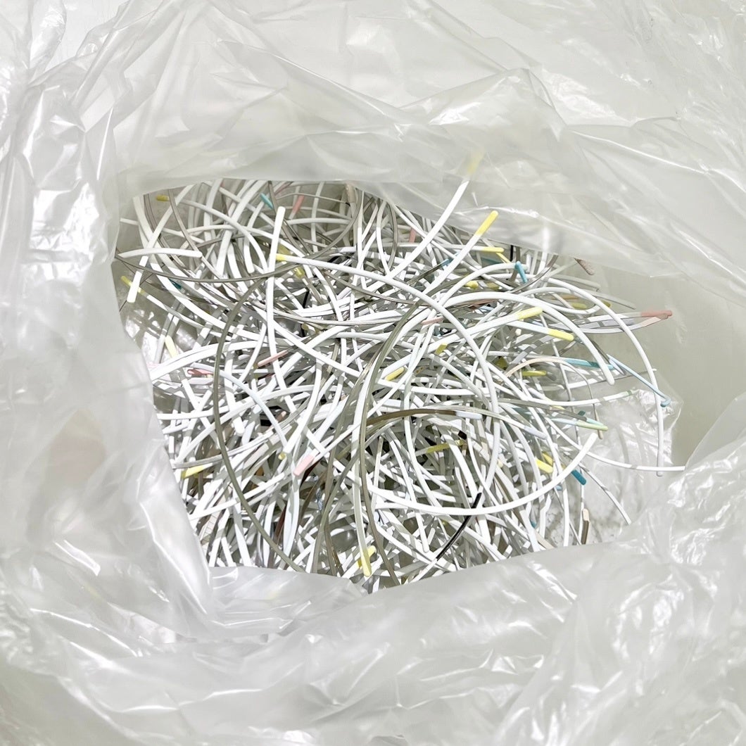 寄付が難しい状態のブラジャーのうち、再資源化が可能な金属パーツ(ワイヤー)を手作業で分離したもの。リユースだけでなくリサイクルも視野に入れた循環型の取り組みの一環であり、下着という廃棄されやすいカテゴリでも持続可能な選択肢を提示。
