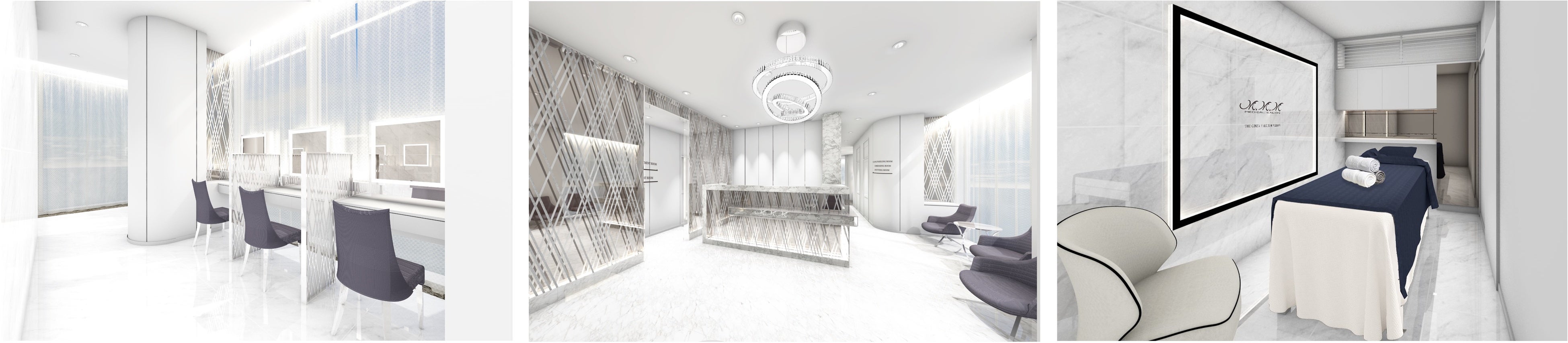 新店舗はロシアンブルー&ホワイトをカラーコンセプトに、明るく開放的なサロンへと生まれ変わります。豪華な大理石調タイルとミラーを贅沢に用いた【クール&モダン】なラグジュアリーな店内には、サロンオリジナル育乳ブラをゆっくり試着出来る専用ルーム、豪華で広々としたドレッサールームを5台完備。プライベート空間でトリートメント後の身支度もゆっくりとご利用いただけます。
