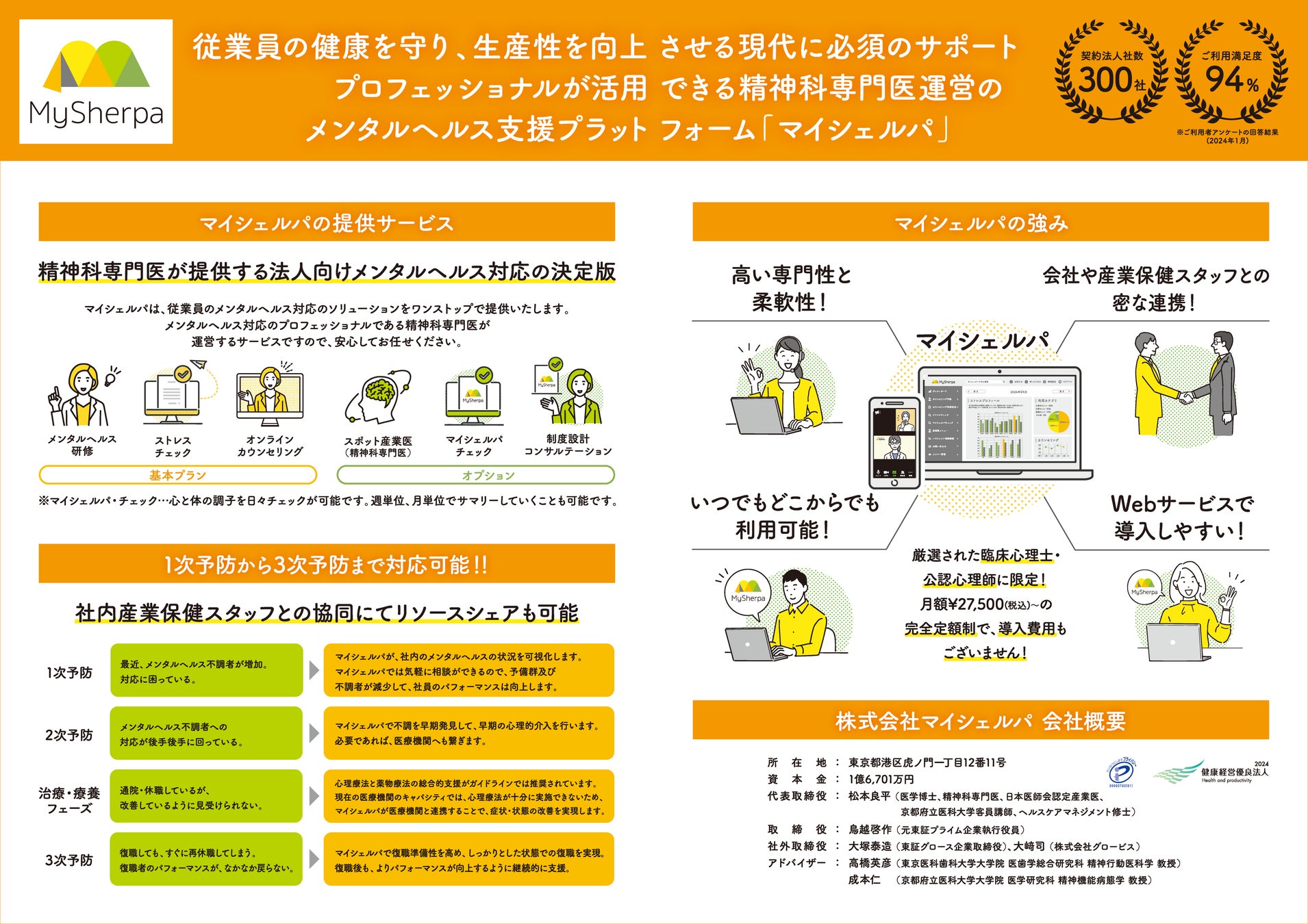 株式会社マイシェルパが「第97回日本産業衛生学会」に「法人向けメンタルヘルス支援サービス」を初出展