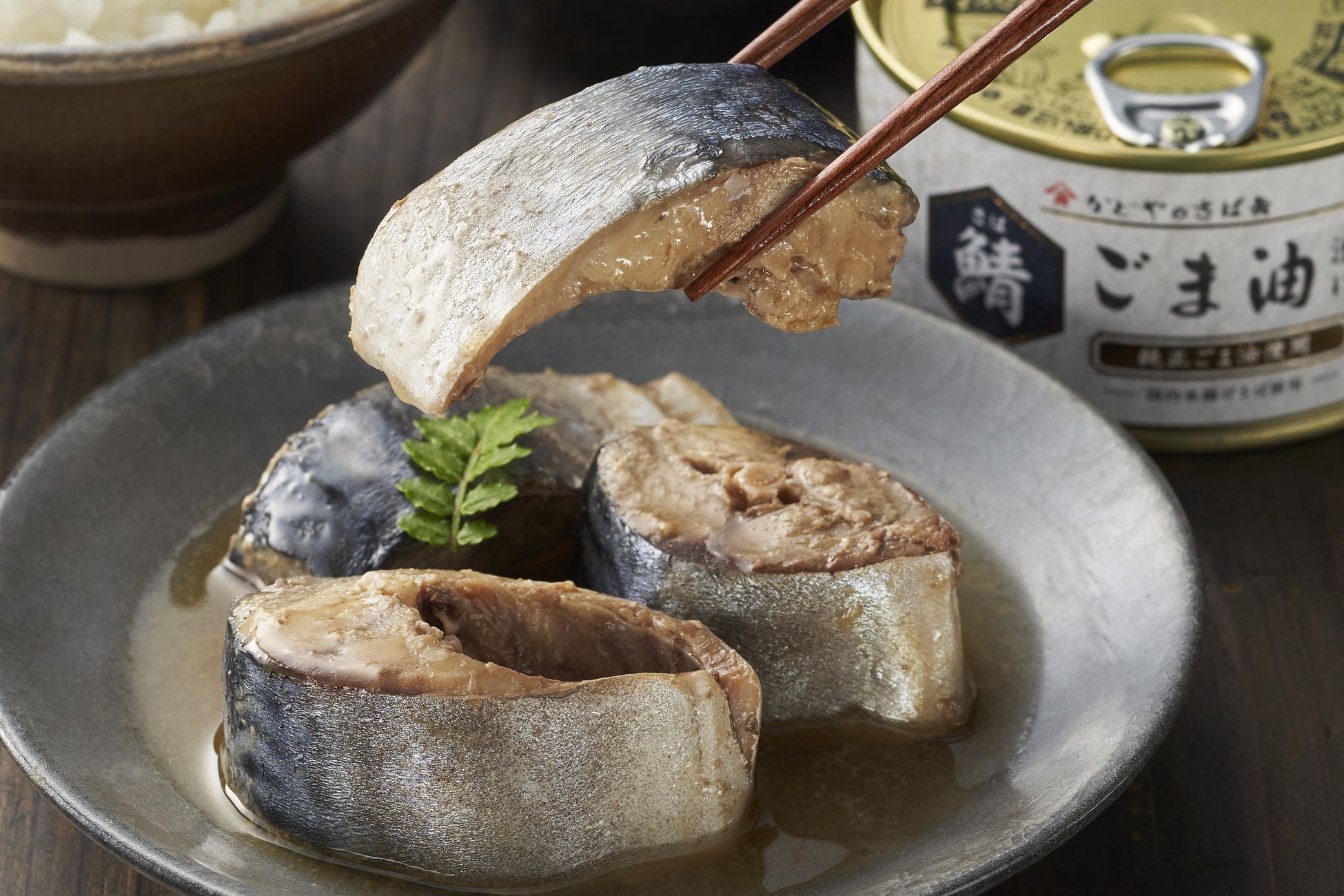 ごま油が決め手!かどや初のグルメ缶詰「かどやのさば缶 鯖ごま油漬け」が新発売