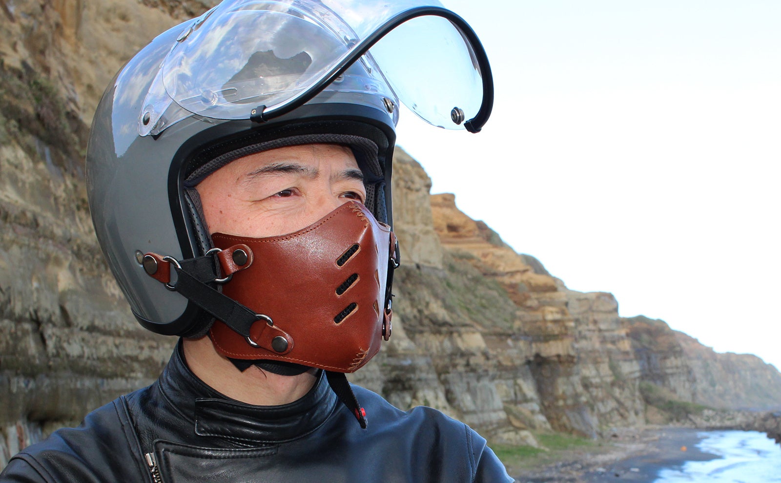 疲れた親父ライダーをイケオジに演出 ジェットヘルメットに装着 本革フェイスマスク 5月17日Makuakeにて限定販売予約受付開始