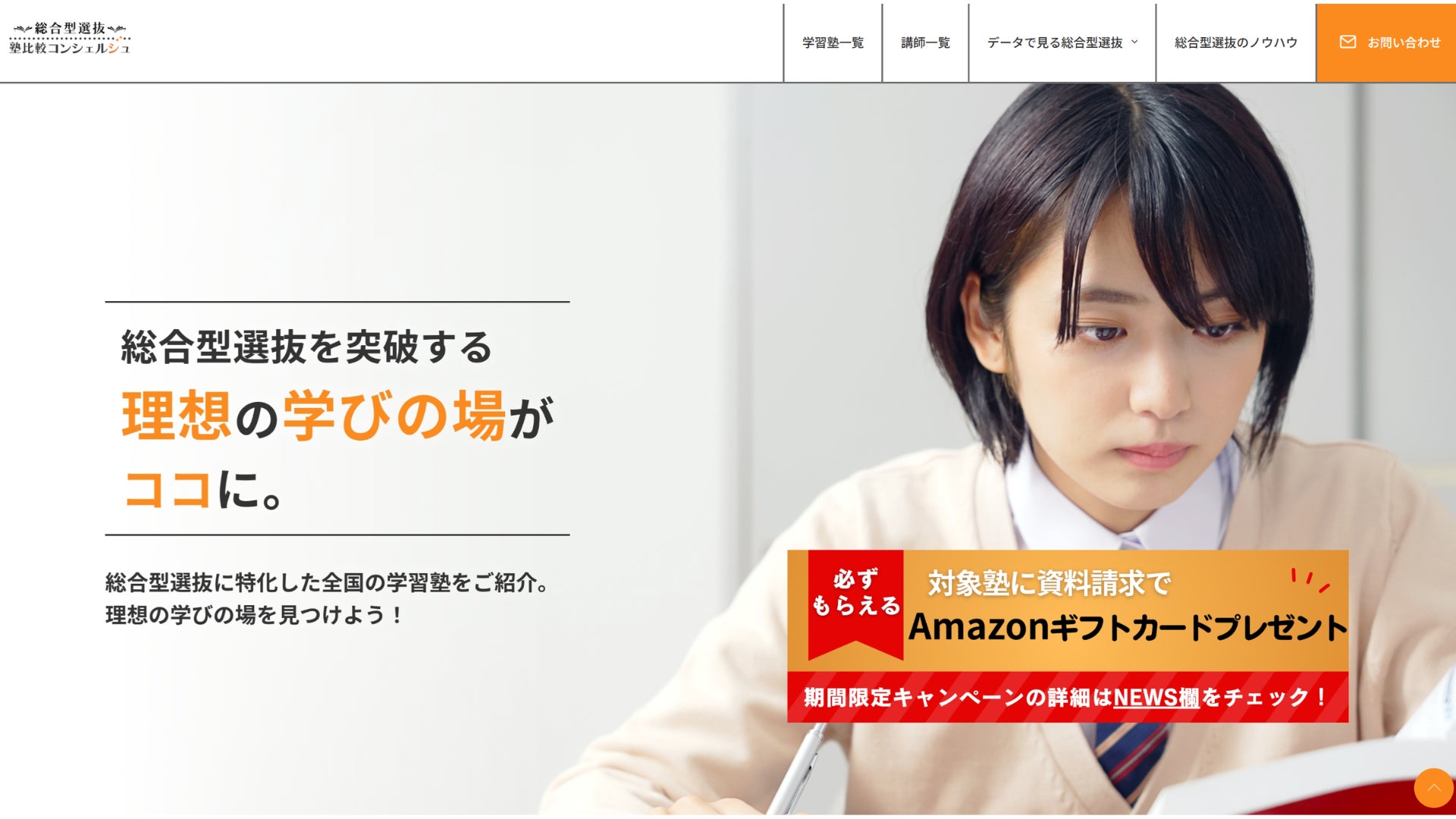 「納得のいく塾選び」で後悔しない受験を。総合型選抜の塾比較サイトが、比較検討を支援するキャンペーン開始