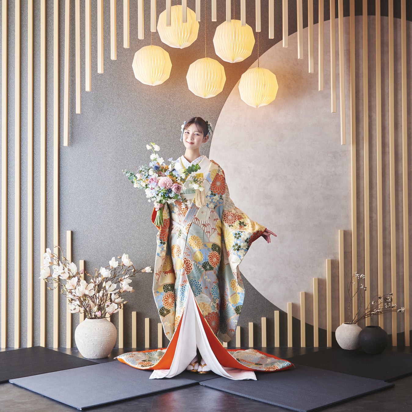インドネシア語で月を意味するBulan。満月や三日月など様々な月が重なり合い調和したセットで、提灯のほのかな光が優しくお二人を包みます。 黄金に輝く月は豊かさの証。これから始まるお二人の豊かな人生を表現しました。