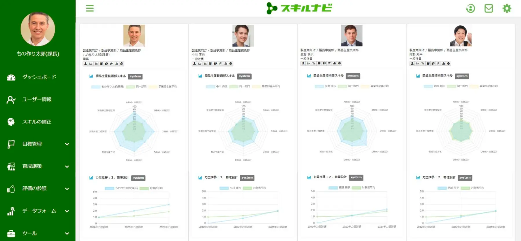 製造業の力量管理に特化したクラウド型スキル管理システムです。標準機能だけで製造業ならではの力量管理に必要十分なスペックを有しながらも、独自の管理手法に対応する拡張性、様々なご要望に答える柔軟性を実現。ISO9001の取得に必要な力量管理にも対応しています。初期費用0円、専属カスタマーサポートチームが全面サポートするため、短期間・低コストで貴社独自の力量管理をクラウドで構築することができます。スキルマップやスキル評価表の作成、教育訓練計画の立案など、現場の膨大な作業を効率化し、本来力量管理が担う「成長」という目標に対して、効果を発揮することで製造業のDXを後押しいたします。