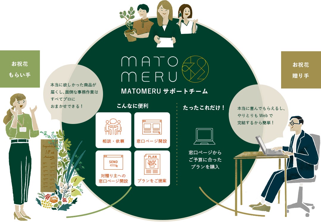 こういった想いに応える形で誕生した、今までにない祝い花のサービスが、『matomeru