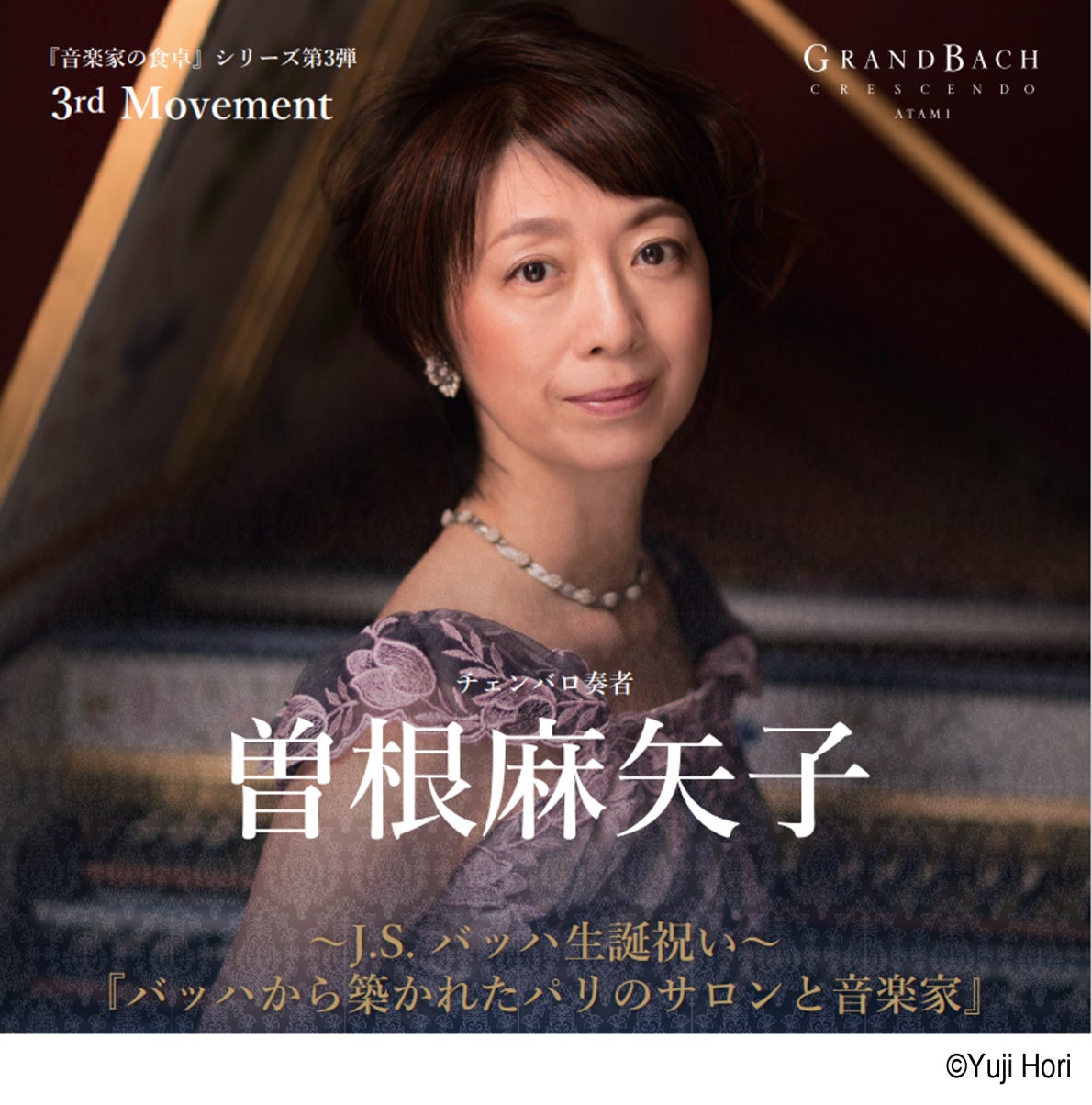 このたびのバッハ生誕を祝うコンサートは、『音楽家の食卓』第3弾としての開催となり、ルネサンス音楽やバッハの時代のバロック音楽で広く使用された鍵盤楽器チェンバロ(英語でハープシコード、フランス語ではクラヴサンという)奏者の曽根 麻矢子氏を迎えます。長らくパリを拠点に活躍されていた曽根氏のトークを交えながら、後に「芸術の庇護者(メセナ)」に繋がるパリ社交界の歴史や、カフェで音楽家などが集っていた時代のサロンの気分をお愉しみください。