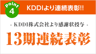 当社はKDDI株式会社より13期連続表彰された安心のauひかり正規代理店です。