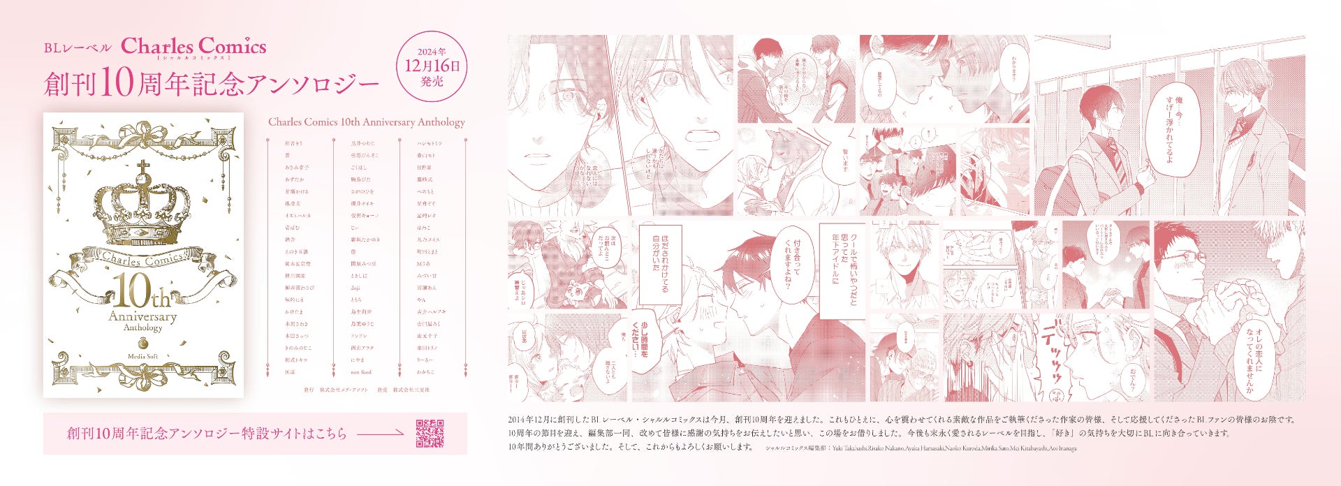 「世界を、もっとビビッドに」をビジョンに掲げ、クリエイターやコンテンツとの協業型ビジネスを最大化する「株式会社灯白社(本社:東京都渋谷区、代表取締役:小木曽一輝)」は、「シャルルコミックス」の創刊10周年記念アンソロジーの発売に合わせた周年プロモーションの企画・ディレクションを担当いたしました。