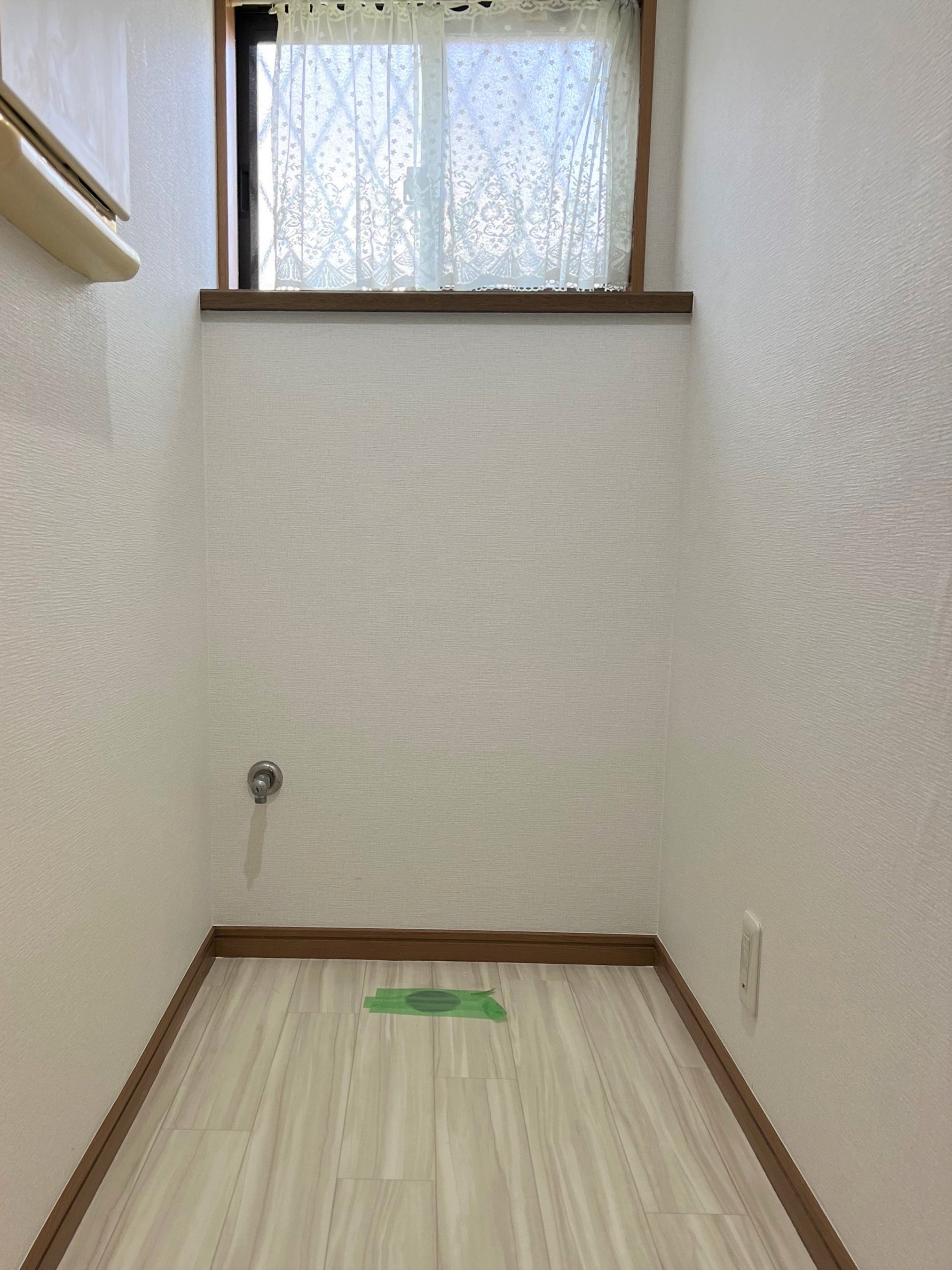 既存のトイレを取り外し、早速内装貼り替えに取り掛かります。