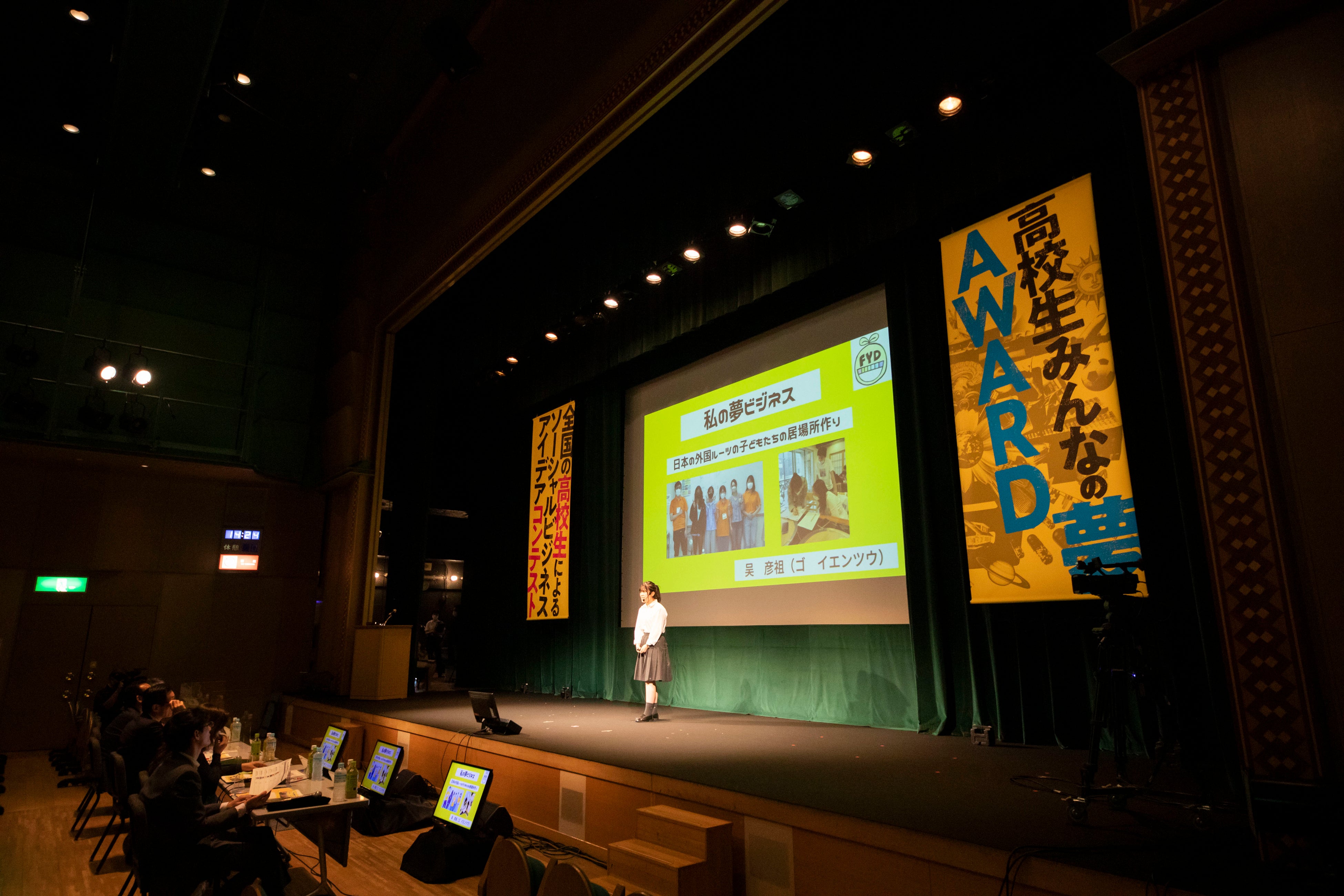 準グランプリに選ばれたのは、「Follow Your Dream(FYD)〜次世代型学童で外国ルーツの子どもたちに居場所を〜」というビジネスプランを発表した吴彦祖さん。外国にルーツを持つ子供たちの為に、留学生講師を中心とした日本語指導と交流会を行う学童保育事業を立案。既にワークショップ形式の学童を開催しており、そのなかで明確になった課題を改善する新たなビジネスモデルを発表し、準グランプリを受賞。