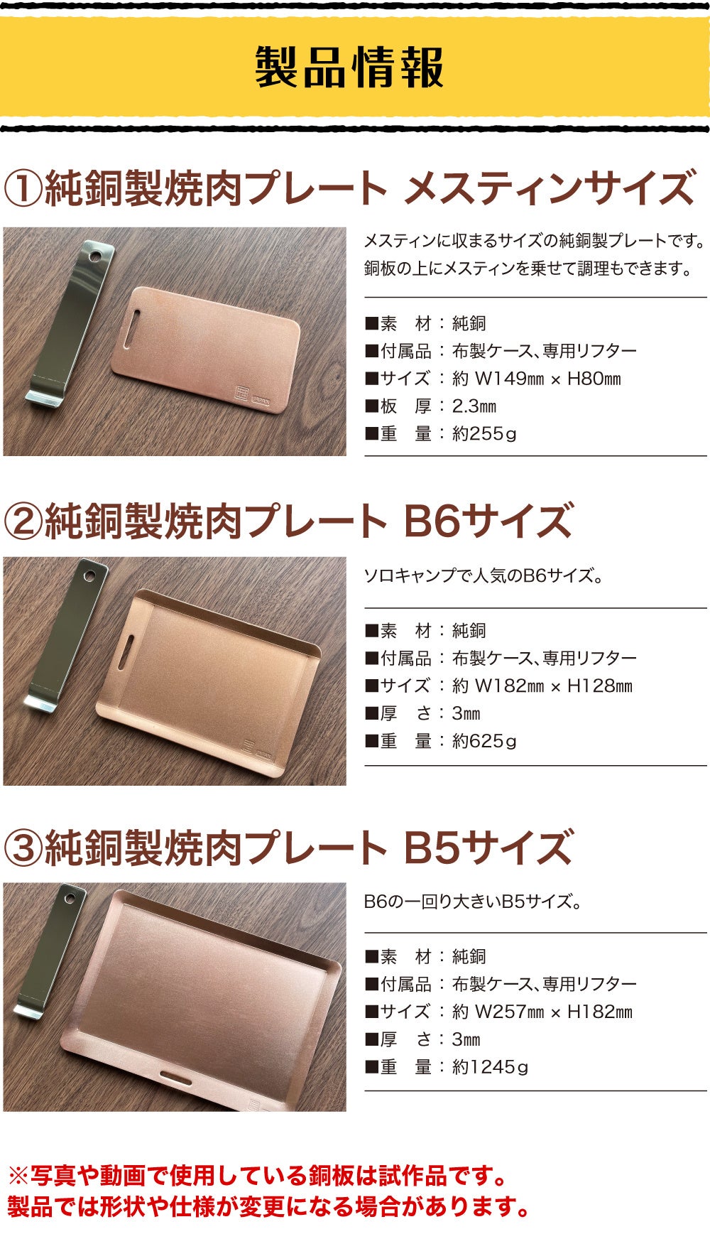 ②純銅製焼肉プレートB6サイズ